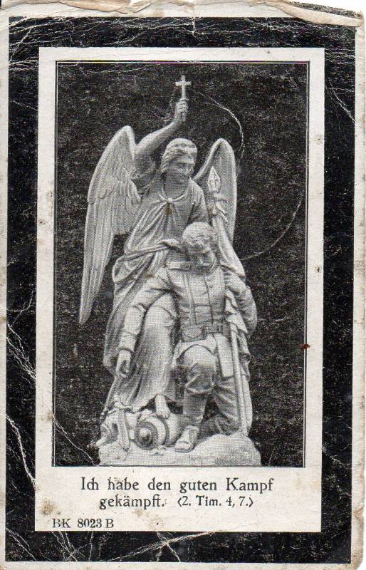 Rückseite des Sterbebildes von Otto Schleindlsberger
