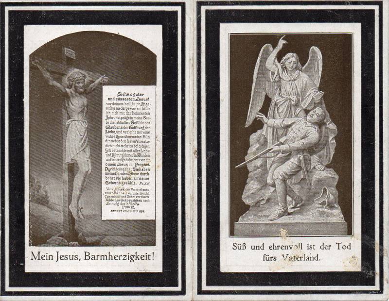 • Gefreiter Wolfgang Haiss, gefallen am 18.07.1915, begraben auf dem Soldatenfriedhof St. Mihiel in Block 5, Grab 135.