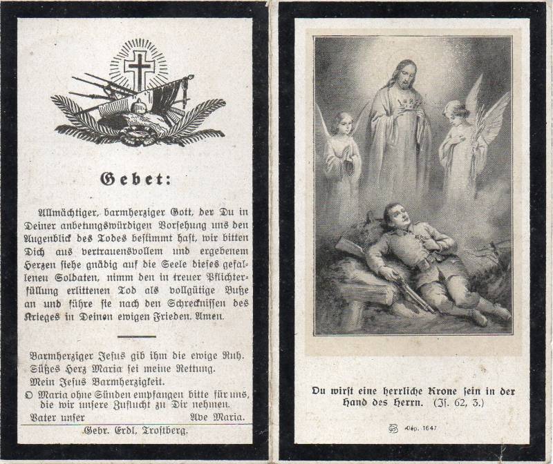 Der Soldat Georg Schatzeder wurde am 02.05.1895 in Peterskirchen geboren, einem Ortsteil der bayerischen Gemeinde Tacherting, und war der Sohn eines Landwirts (Ruschbauerssohn). Im Ersten Weltkrieg diente er als Infanterist in der 11. Kompanie des 17. bayerischen Reserve-Infanterie-Regiments. Am 03.05.1917 fiel er nach zwei Jahren Kriegsdienst im Alter von 21 Jahren während der Schlacht bei Gavrelle in der Nähe von Fresnes-lès-Montauban (Arras).