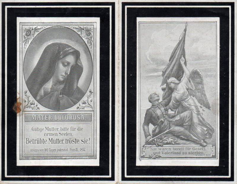 - Infanterist Michael Einmüller, gefallen am 11.10.1915 bei La Folie, begraben auf dem Soldatenfriedhof St.-Laurent-Blangy in einem Massengrab;