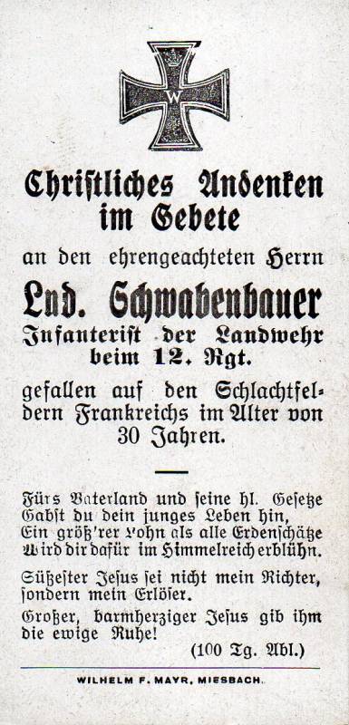 Sterbebild von Ludwig Schwabenbauer