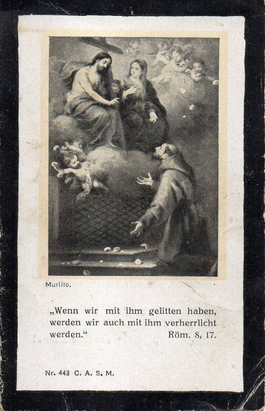 Rückseite des Sterbebildes von Anton Fertl