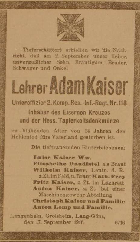 Über den Todestag und die Todesumstände von Adolf Becker berichtet die Regimentsgeschichte des 116. Kandwehr-Infanterie-Regiments:
