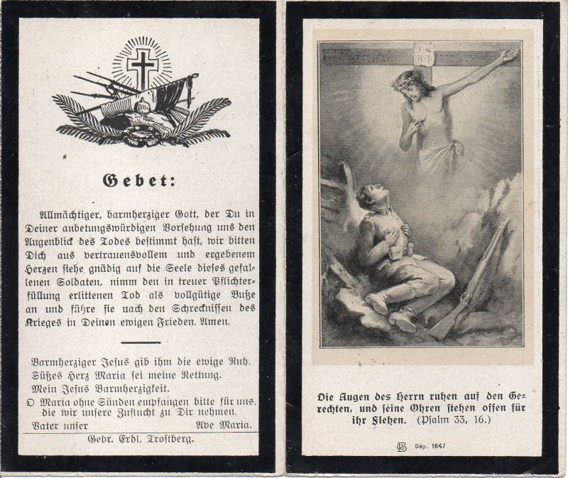 Sterbebild von Georg WeidingerRückseite des Sterbebildes von Georg Weidinger