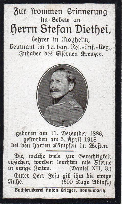 - Leutnant Jakob Schöttl, gefallen am 05.04.1918 bei Hebuterne, begraben auf dem Soldatenfriedhof St.-Laurent-Blangy in einem Massengrab;