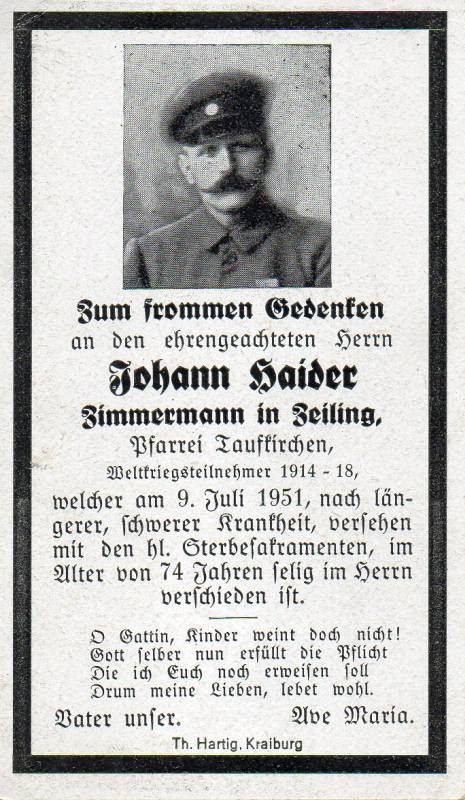 Offiziell ist für Karl Zwiflsberger keine Grablage bekannt. Ich bin mir jedoch sicher, dass er anonym in einem Massengrab auf dem Soldatenfriedhof Hohrod begraben wurde, wo auch seine Regimentskameraden beigesetzt wurden, die am gleichen Tag fielen, u. a.